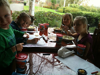 a petting zoo, puppet show (the kids' favorite part), a choral concert in the church (it sounded incredible, even with the glass doors shut...and even better when they'd open them) and we each got some hot chocolate! The hot chocolate was awesome on the cold, windy night.